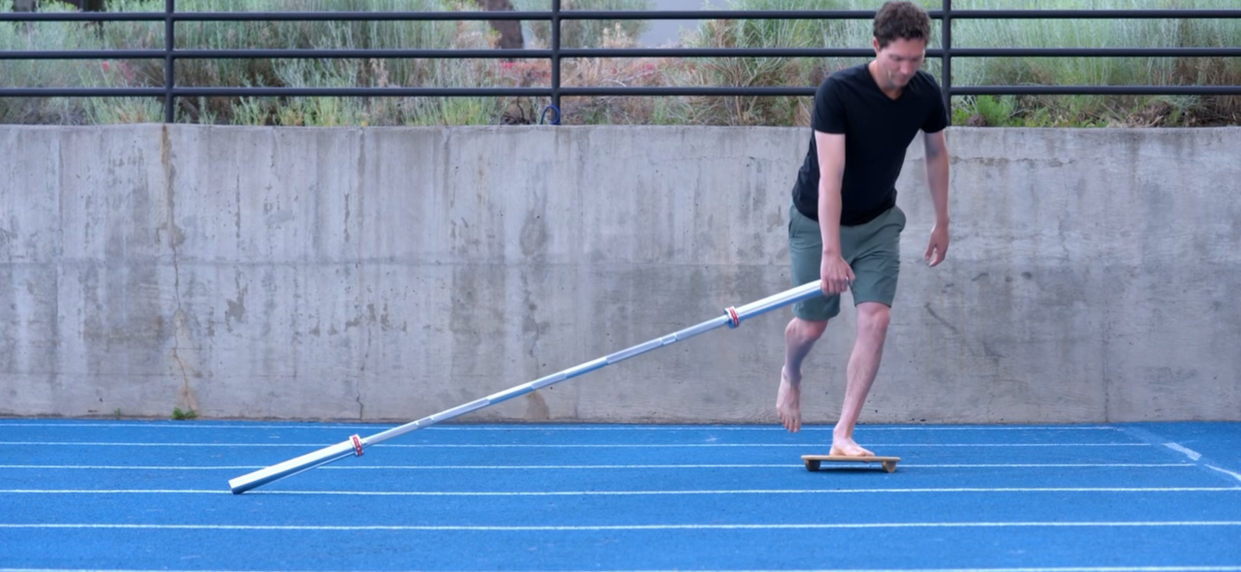 aim for 3 sets of 8 on each foot. The load should be “challenging” but doable. Stack some weight plates on the bar when ready.